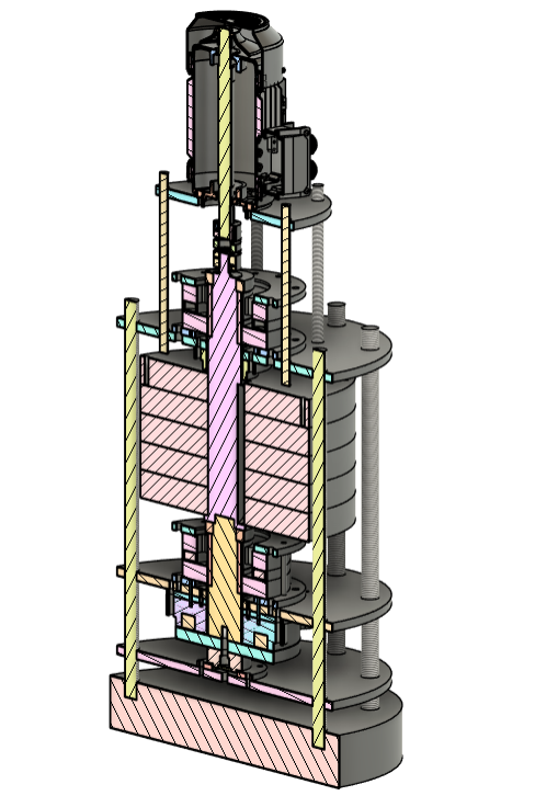 The PoC is designed to most efficiently test the bearings with a 1% scale rotor of 300 kg.